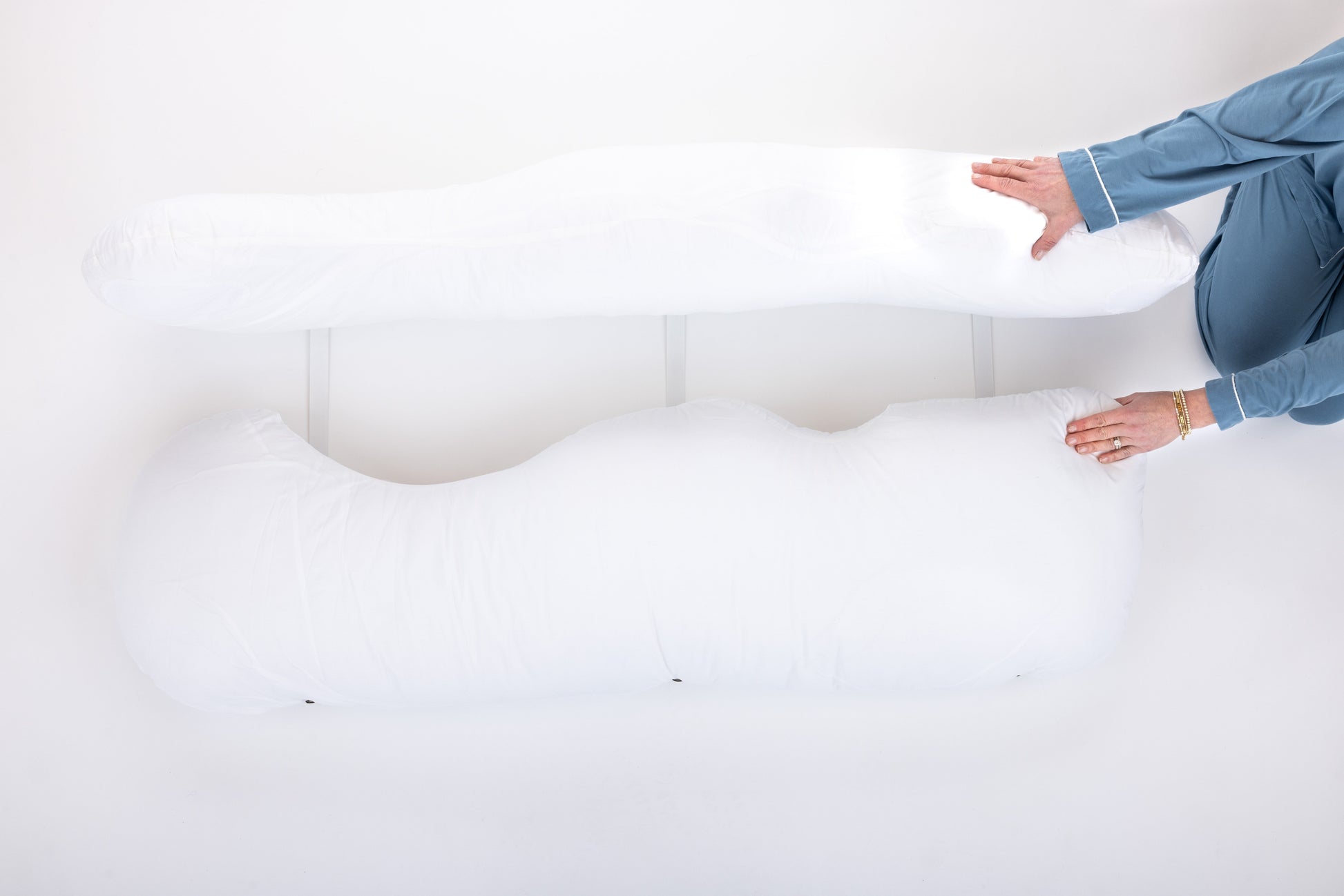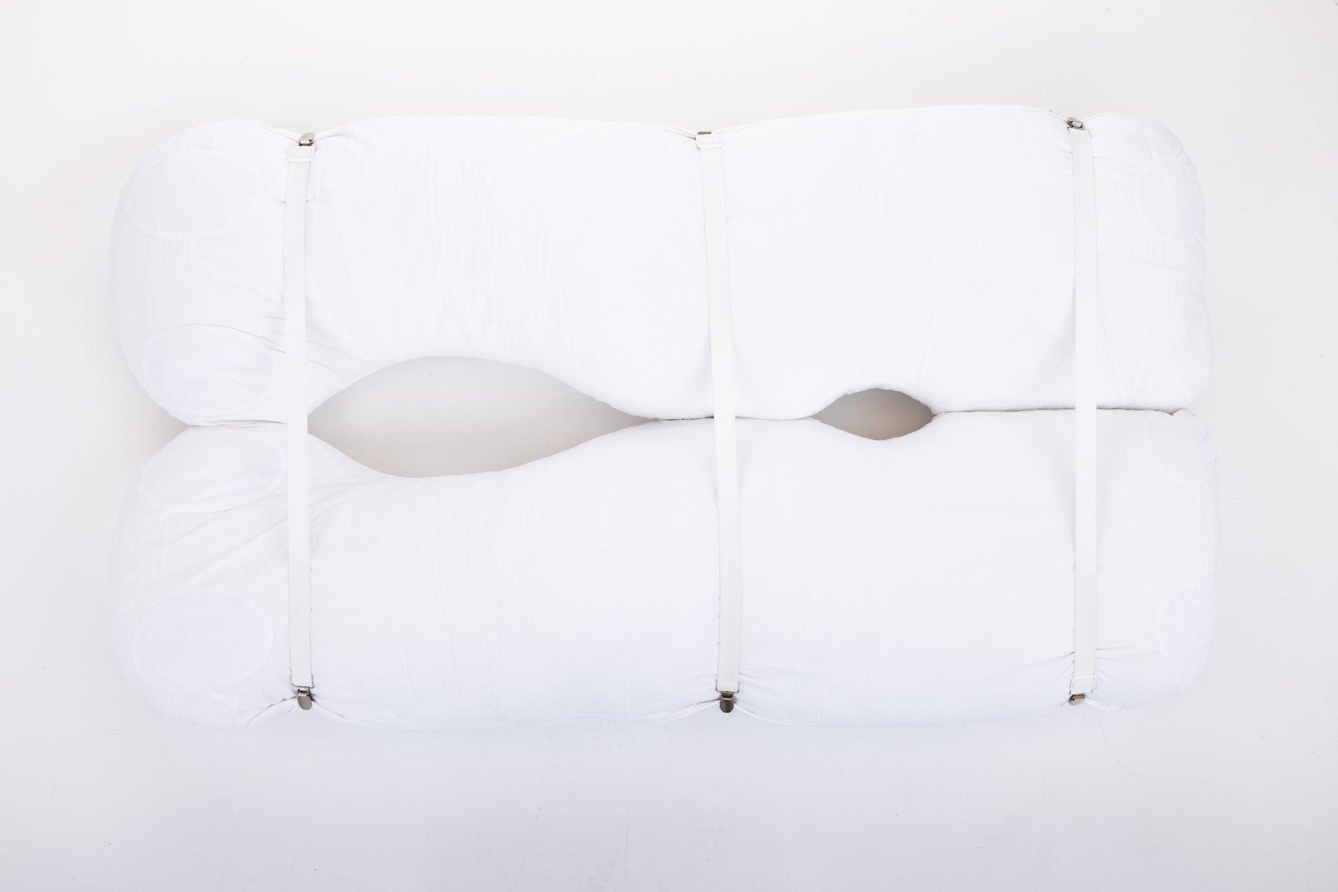 These extendable and adjustable custom straps are made for the mover and shaker! Our Pillow Straps with Clasp keep your two side pillows from moving throughout the night. The straps attach easily on the outside edges of the side pillows and secure the side pillows together. You should not feel or see the straps when lying in the pillows.
